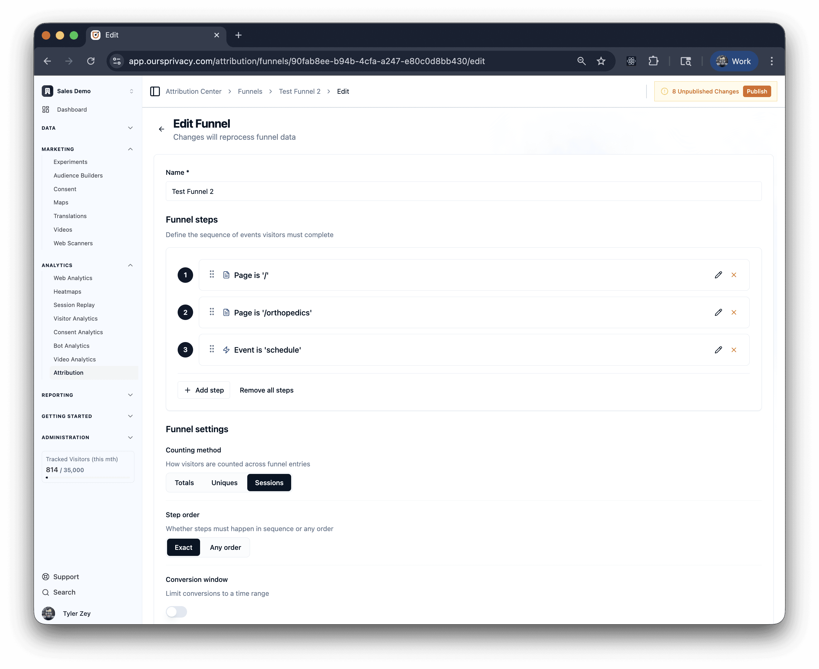 Conversion windows: Set how long a visitor has to complete the funnel from first step to last
