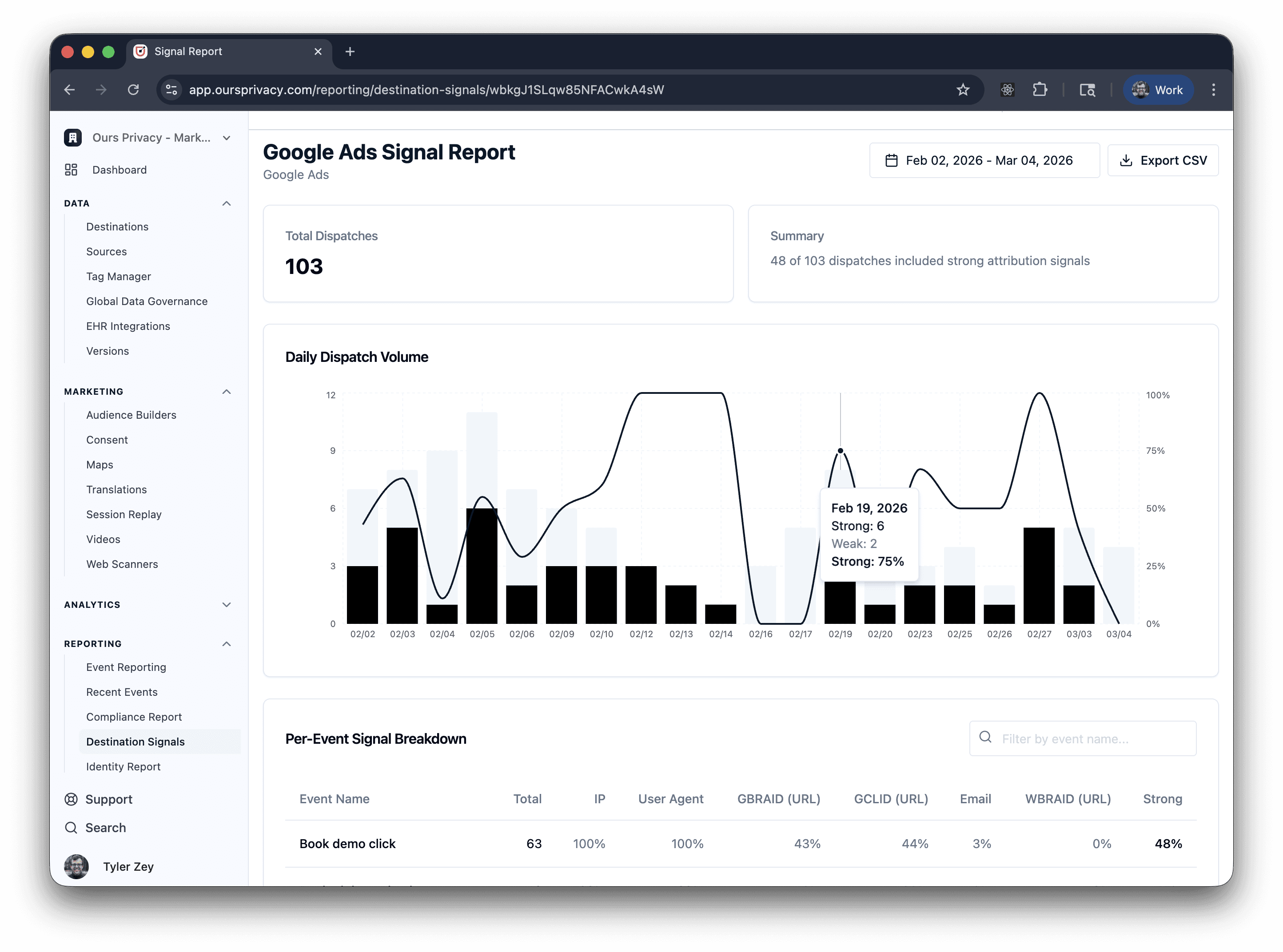 When your media team asks "are our conversions actually getting attributed?" you have a direct answer. Not a guess based on platform-side reporting, but a signal-level audit from your own pipeline.
